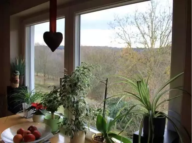From the above photo, we can see clearly that the owner has filled the window sill with all kinds of green plants. Does he not think it too troublesome to move the green plant away when opening the window?!... Of course not! Because their windows are not completely casement inside or outside! So when the window is opening, it does not affect these green plants at all!